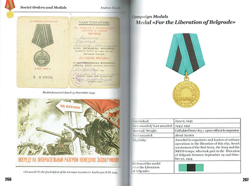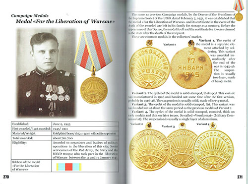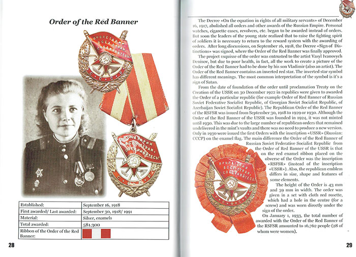 共産主義時代の勲章21種、メダル55種、そして賞3種をフルカラー画像で掲載。実際の勲章の表面と裏面の包括的な画像は、
