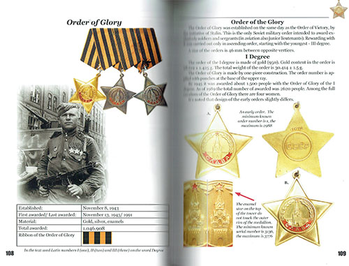 共産主義時代の勲章21種、メダル55種、そして賞3種をフルカラー画像で掲載。実際の勲章の表面と裏面の包括的な画像は、